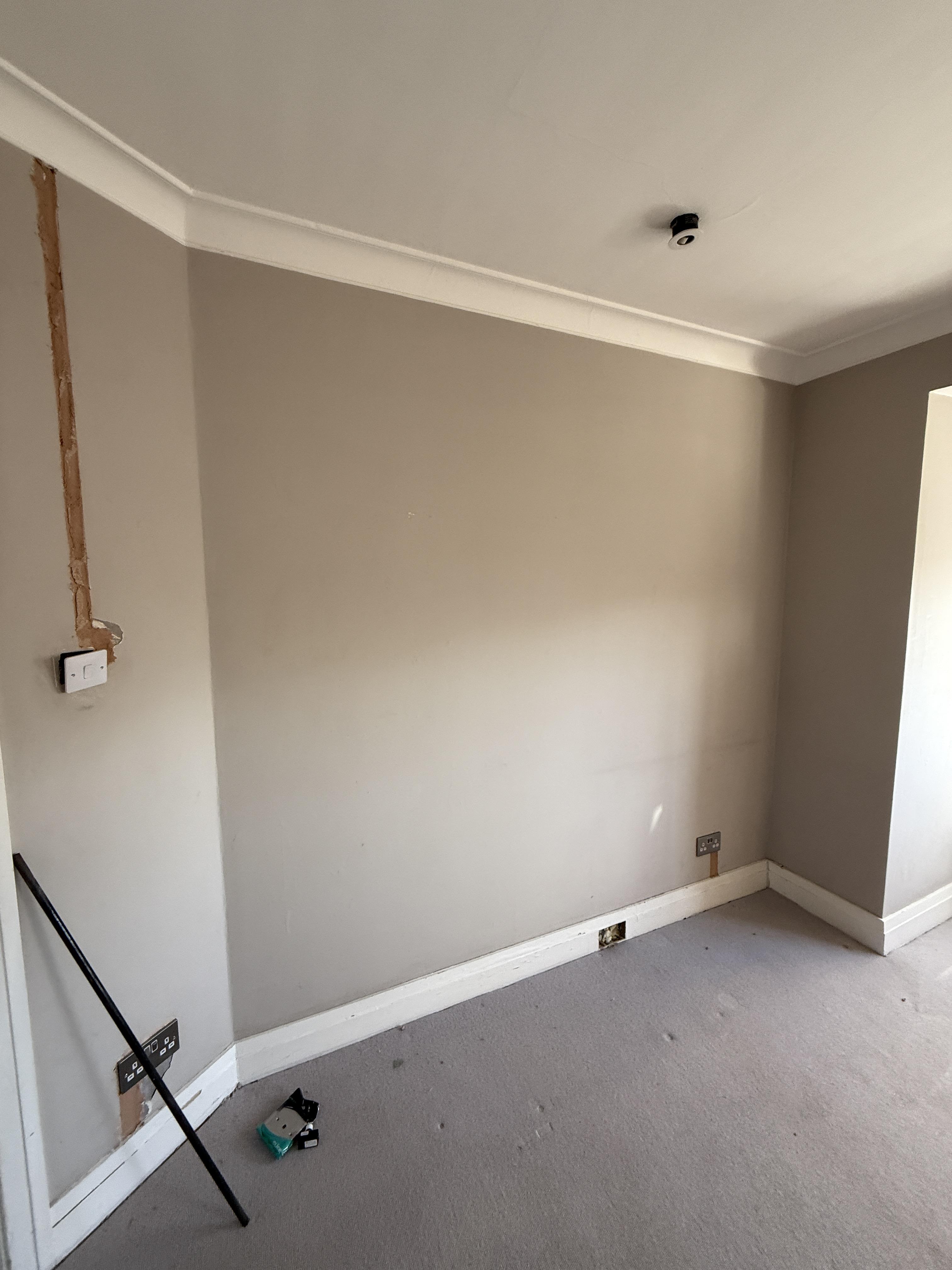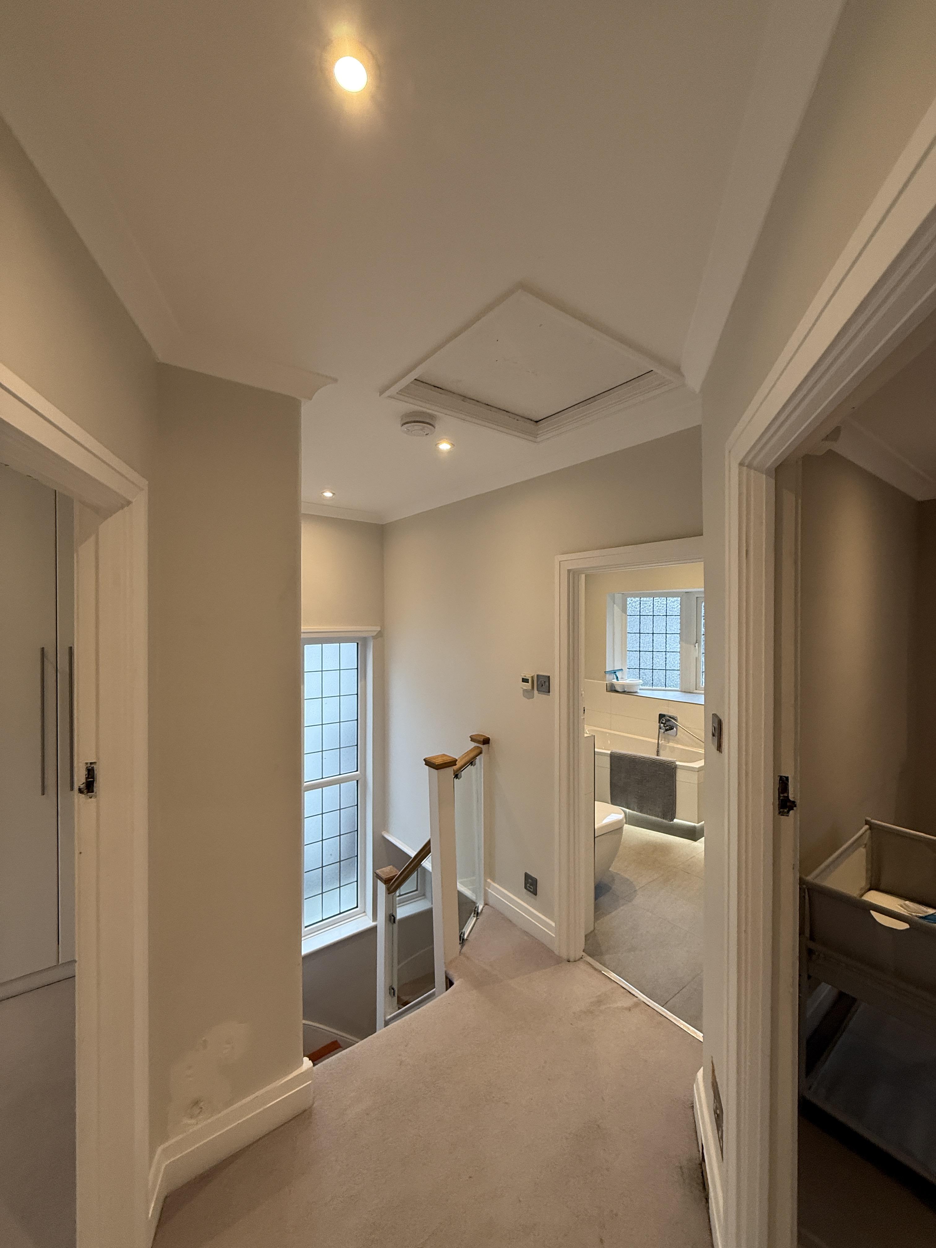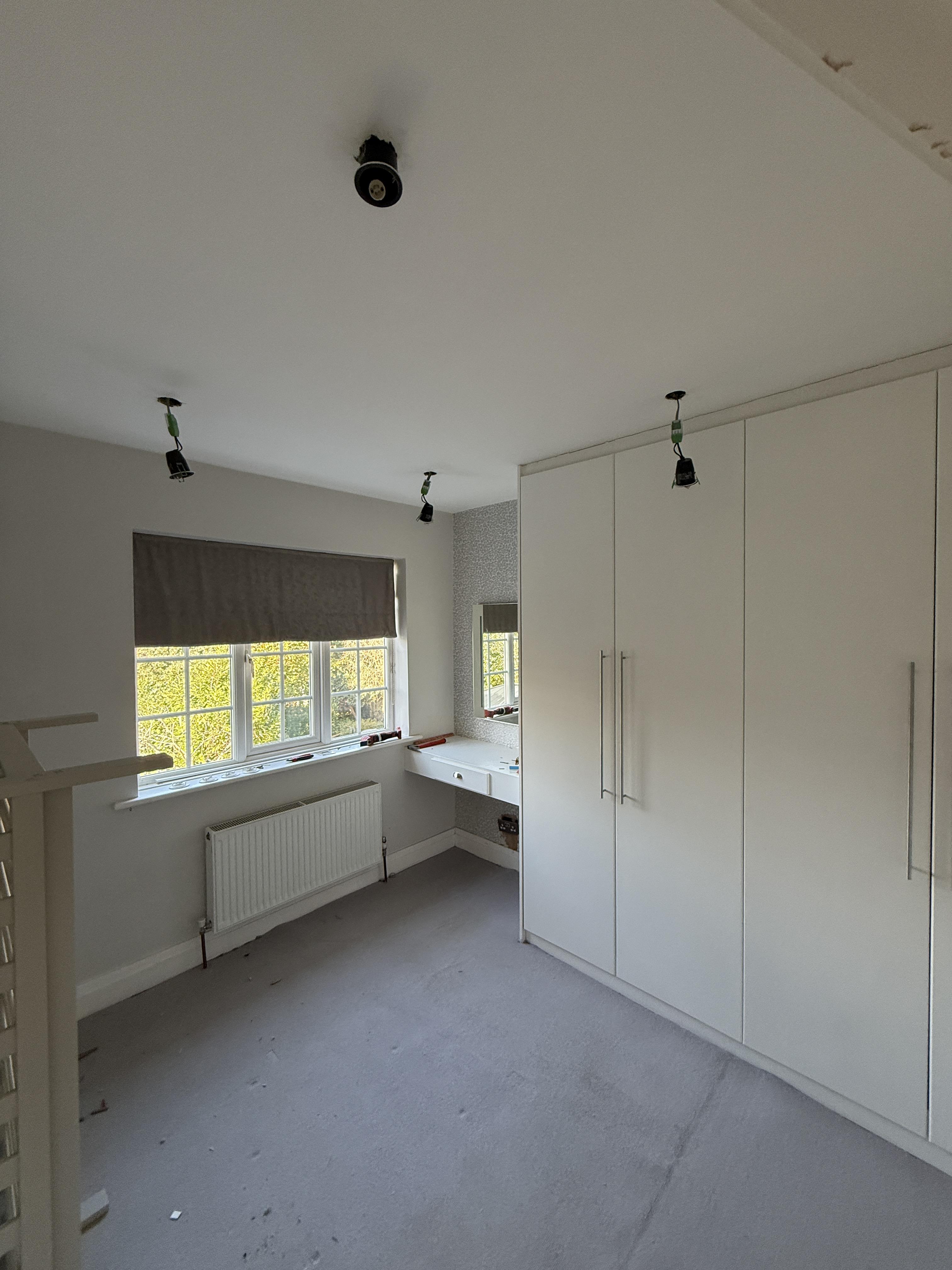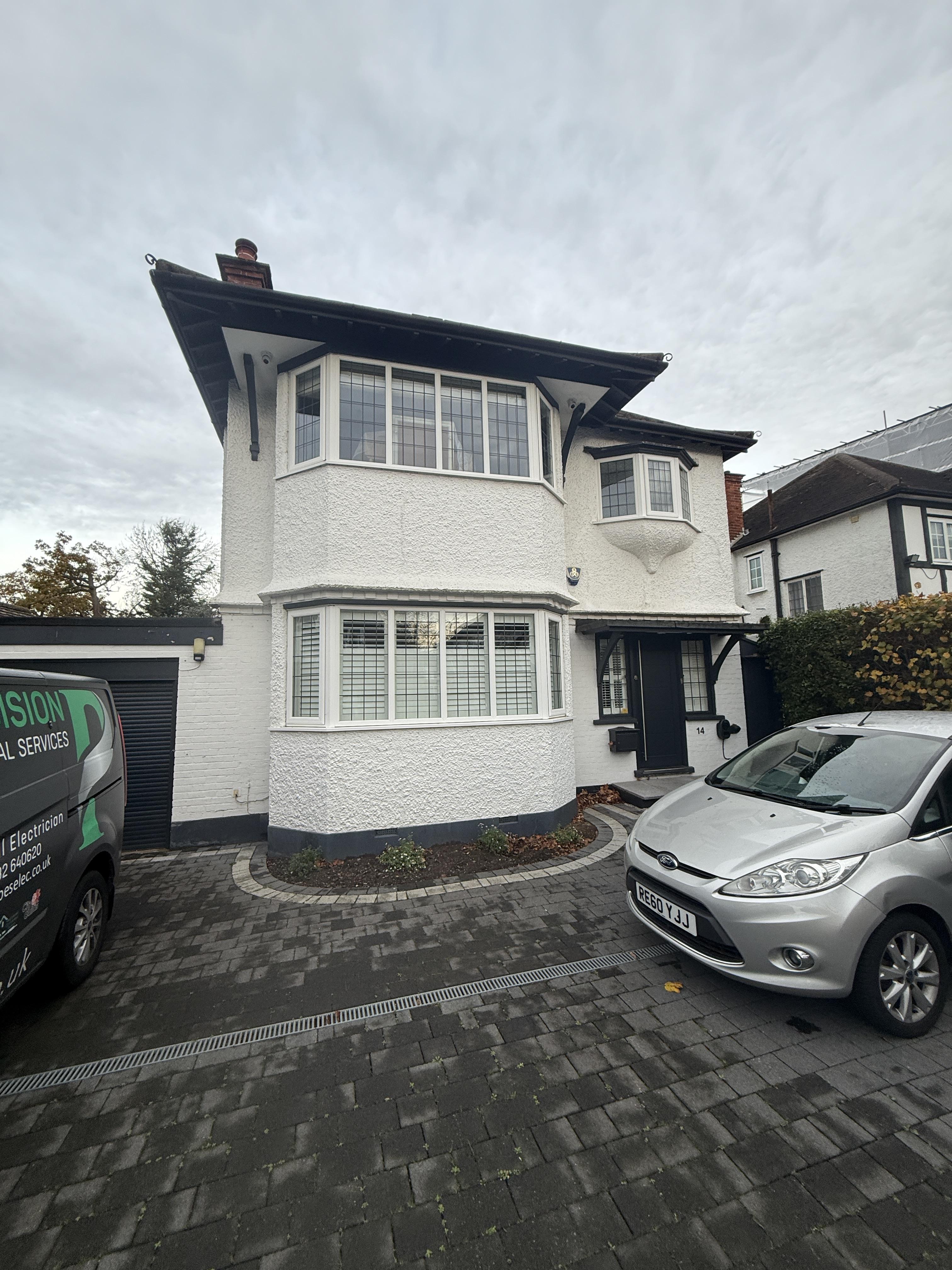 Our team isolated and removed all existing circuits before carrying out a full house rewire, installing entirely new cabling throughout the property. As part of the electrical upgrade, we fitted a new switch fuse to allow the consumer unit to be relocated to a more practical and accessible position. The installation included new fire-rated recessed spotlights, modern socket outlets, updated lighting circuits, interlinked smoke detectors, and external lighting to improve both safety and functionality around the home. To minimise disruption for the homeowner, we also included patching where walls were channelled during the rewire.